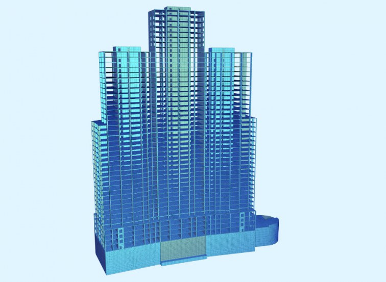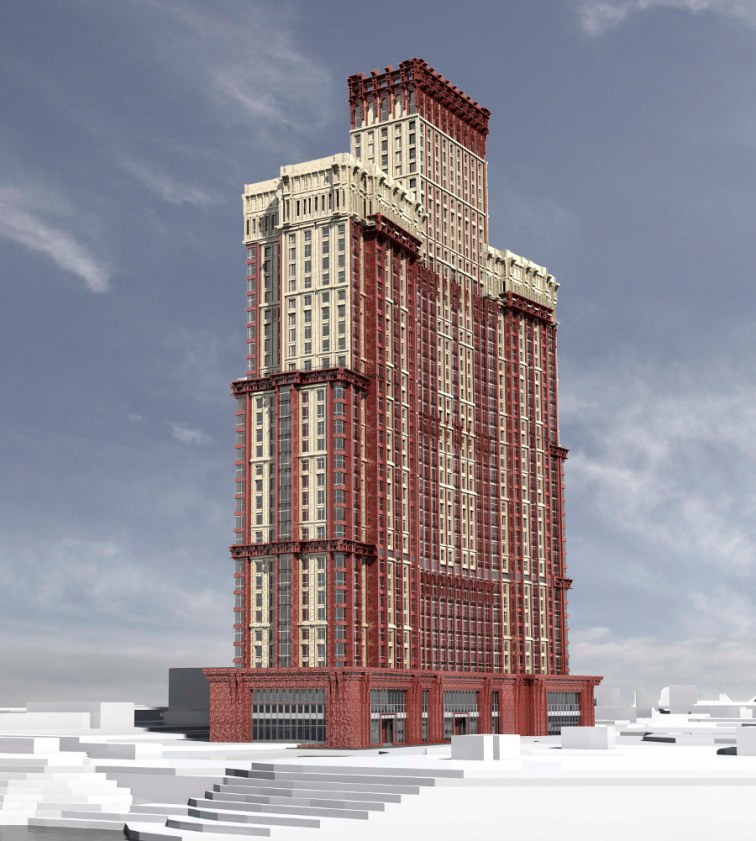 Башня перекликается с небоскребами Москва-Сити, зданиями Министерства Иностранных дел и гостиницы Украина. Здание состоит из трех частей-секций этажностью 38, 46 и 38 этажей.