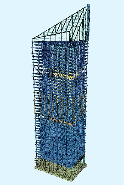 Поверочный расчет высотного здания был выполнен в расчетном комплексе Sofistik. На основании Поверочного расчета были разработаны решения по оптимизации существующего проекта, обеспечивающие увеличение полезной площади здания, снижение стоимости и сроков строительства.