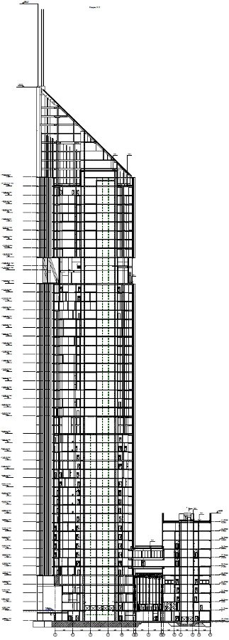 В конструктивном отношении высотное здание представляет собой монолитный железобетонный каркас, который состоит из 23 периметральных колонн и центрального ядра жесткости.