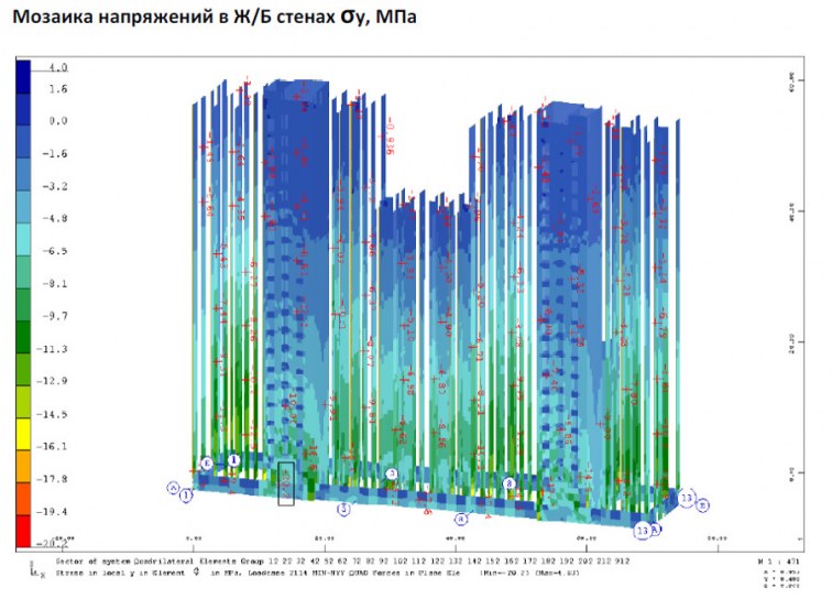 Шаг пилонов и стен переменный: от 3,1м до 4,7м. Толщина внутренних стен – 200мм, 250мм. Плиты перекрытия толщиной 160мм.